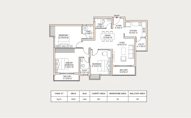 Spread across 5.1 acres with 70% open space, DTC Still Waters offers an unmatched balance of greenery and modern design. The project features 3 and 4 BHK apartments ranging from 1,160 to 2,030 sq. ft., across 3 elegant towers (G+22 & G+23) with 452 spacious units, designed to maximize light, ventilation, and comfort.