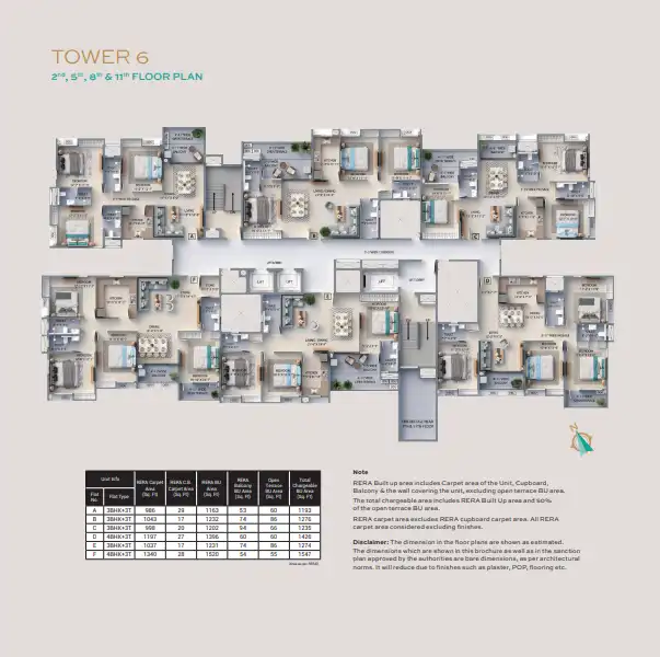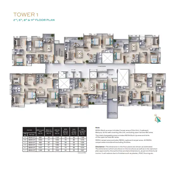 F Residences is set across an 8-acre land area and features four high-rise blocks with B+G+13 floors. The project includes 1,000 residential units, offering spacious 3BHK and 4BHK apartments that range from 1074 to 1,555 sq ft. These units are meticulously designed to offer comfort, style, and functionality. Interiors are crafted with large windows, quality finishes, and ample space, creating an ambience of modern luxury. Each apartment is outfitted with premium amenities, making F Residences the perfect choice for those seeking a high-end, sophisticated lifestyle.